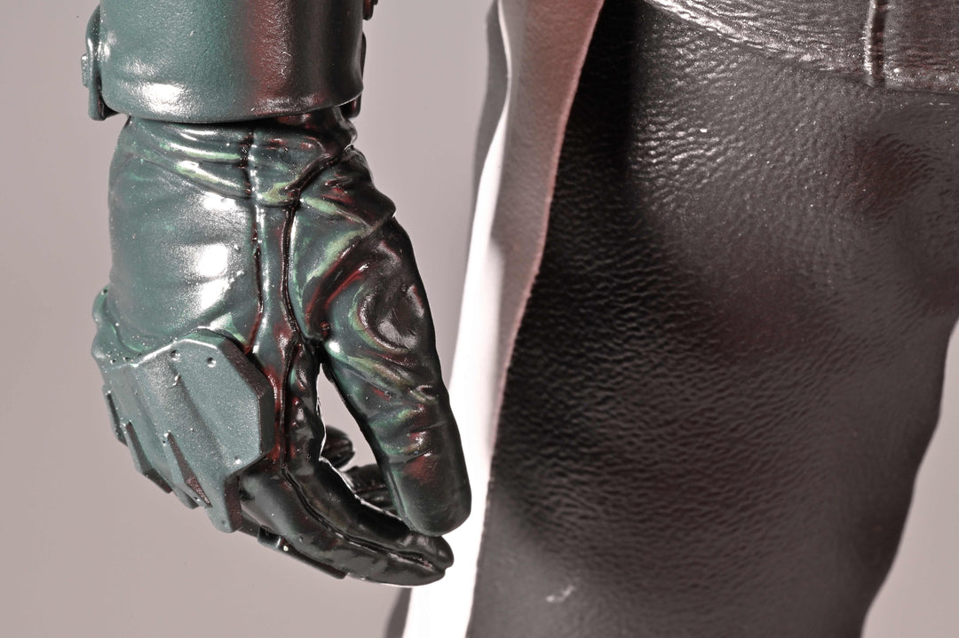 さらにはスーツのシワの入り方、グローブの状態にいたるまて、様々なアプローチで徹底観察し造形演出をしています。