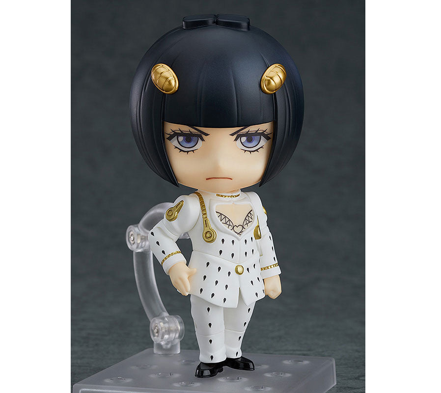 覚悟はいいか?オレはできてるフル可動仕様となっているので、自由度の高いディスプレイが堪能できます。交換用表情パーツには理知的な「通常顔」、「戦闘顔」、「目線振り顔」をご用意しました。オプションパーツには、スティッキィ・フィンガーズのスタンド能力による「ジッパーパーツ」、ジッパーで伸ばした腕の長さを変える「スタンド腕」パーツが付属。突如ジッパーから現れるブチャラティの姿を楽しめます。印象的な「アリーヴェデルチ」のポーズがとれる手首パーツ等、豊富なオプションパーツで劇中の再現が可能です。ねんどろいどサイズになったブチャラティを是非お手元にお迎えください。