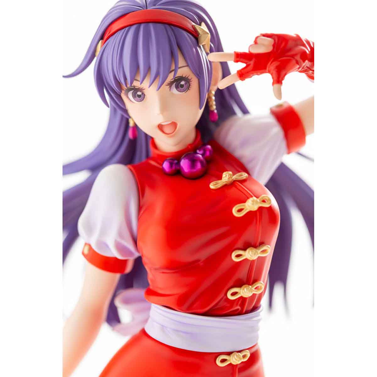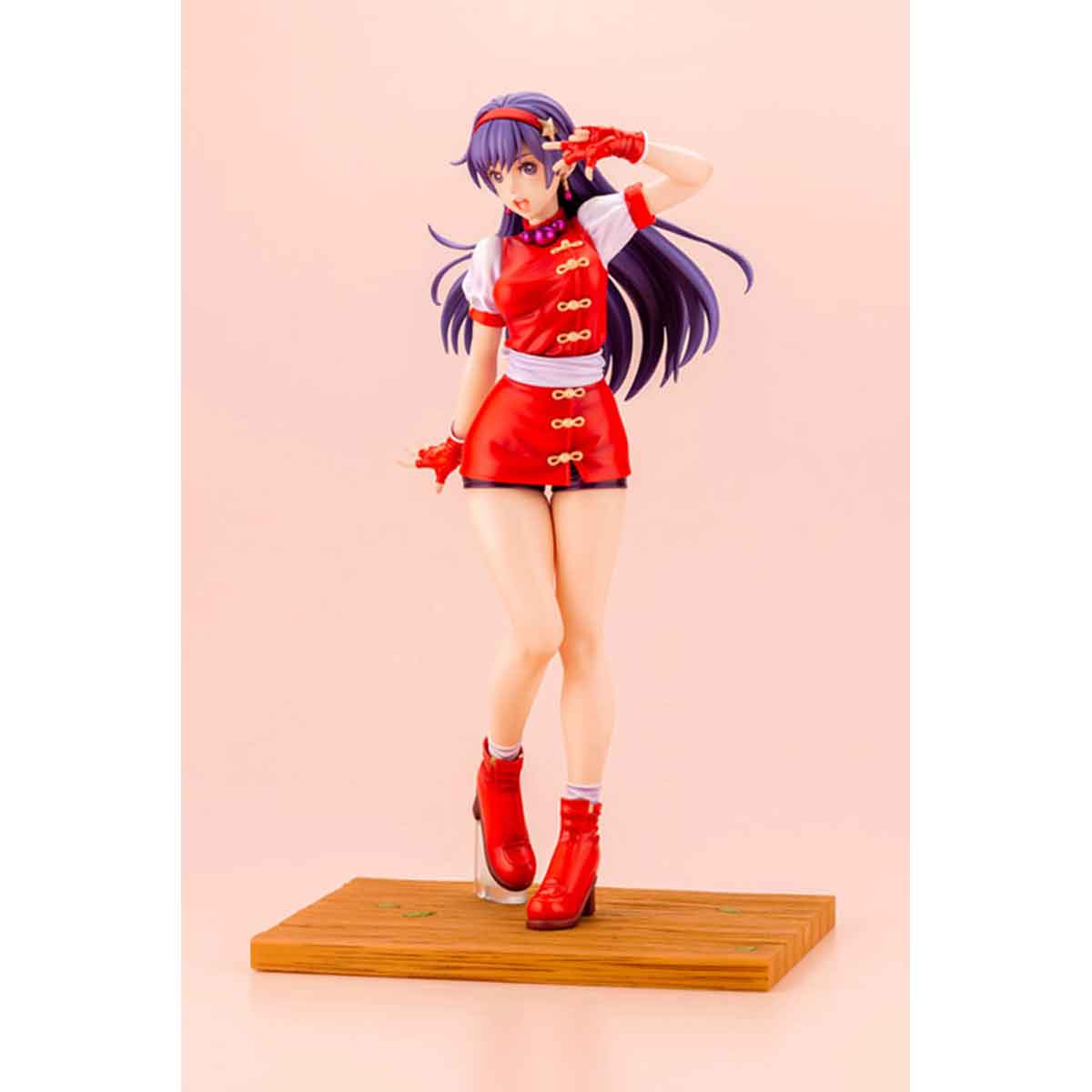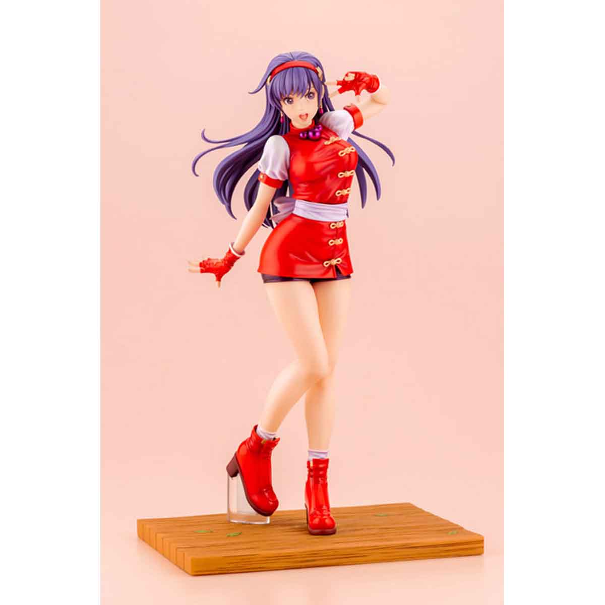 拳法着とチャイナ服がモチーフの道着服にスパッツを組み合わせたKOF’98でのコスチューム姿を原型師 毒島孝牧(BUSUJIMAX)氏が華やかに立体化しました。