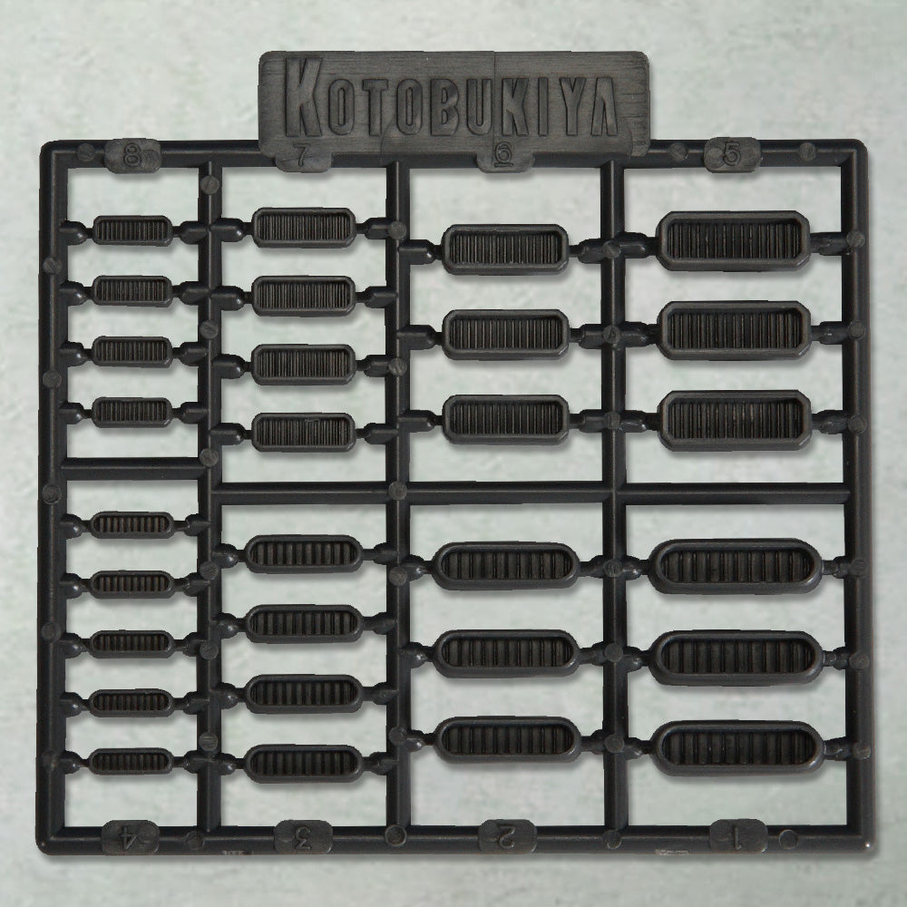 • 13cm以上のメカのバックパックや脚部などに使える角ダクトのそれぞれの角が円形、多角形に構成されたダクトパーツです。