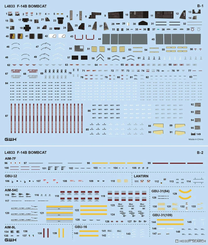 付属エッチングパーツ内容: AN/AWG-9レーダー、編隊灯、バックミラー、他